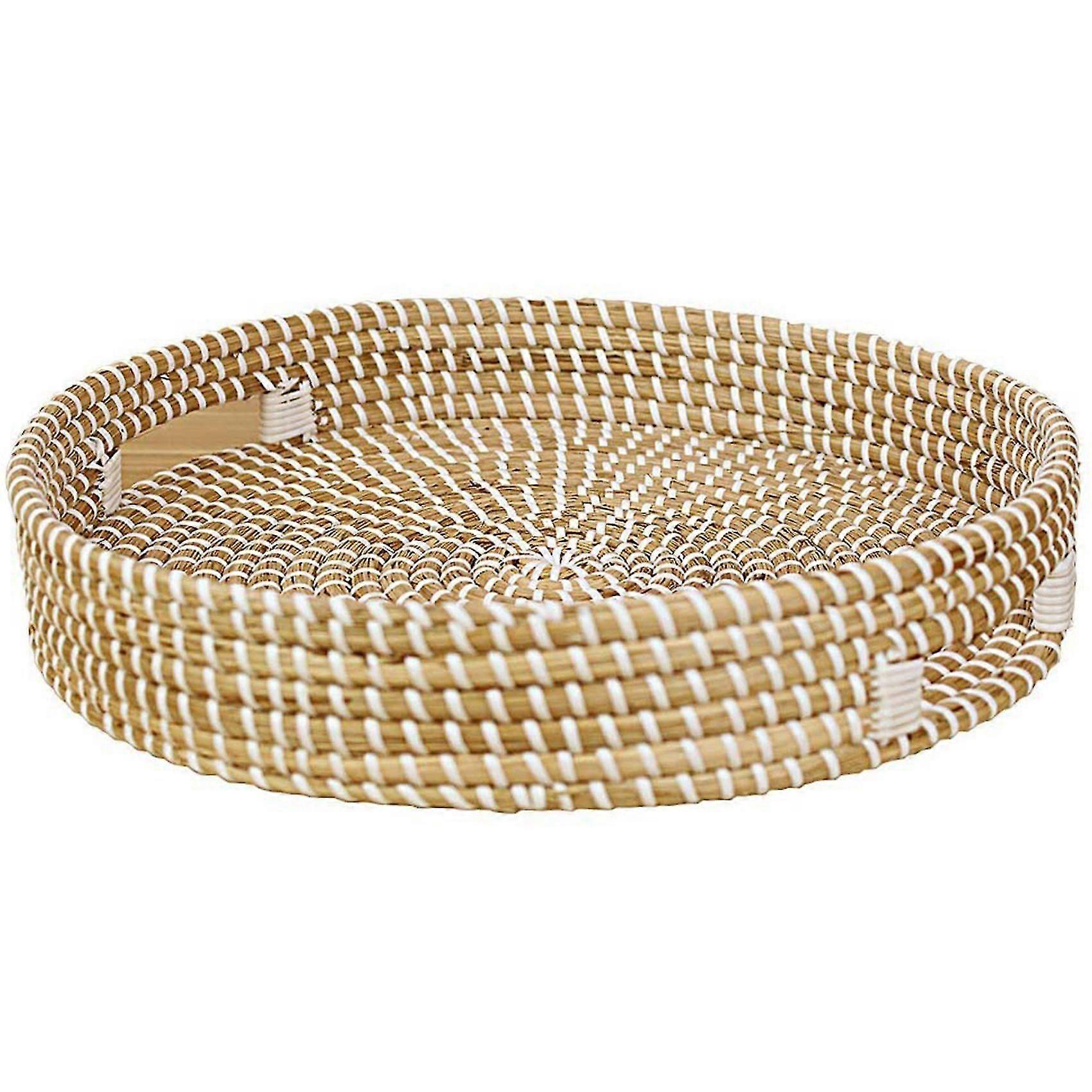 Natural Seagrass Woven Basket Round Serving Tray with Handles Coffee Table Tray Hand Woven Storage