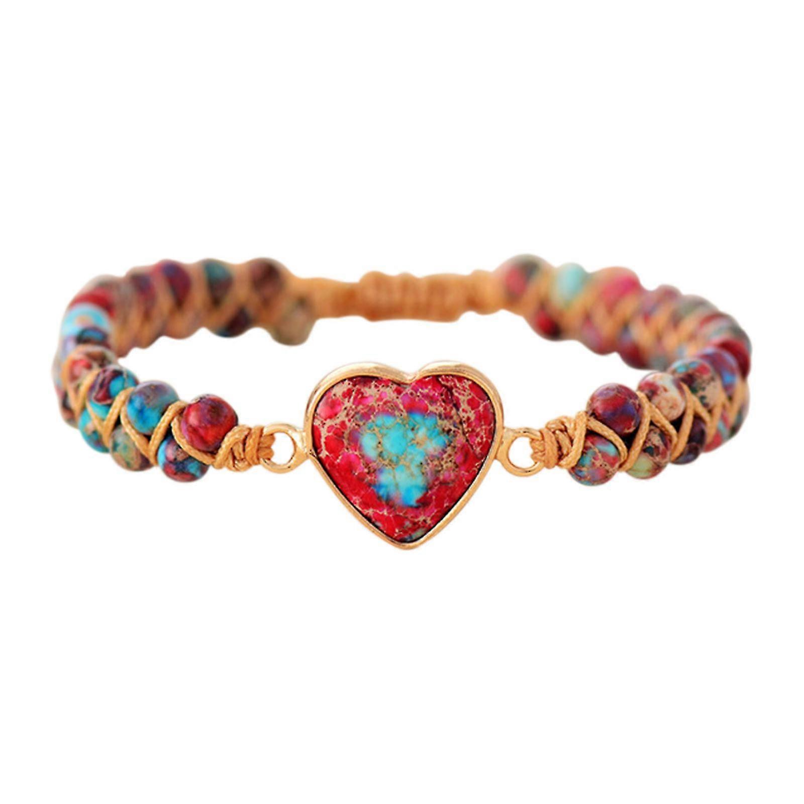 Natural Stone Beaded Leather Bracelet Heart Shaped Jasper Bracelet Handmade Boho Couple Gift