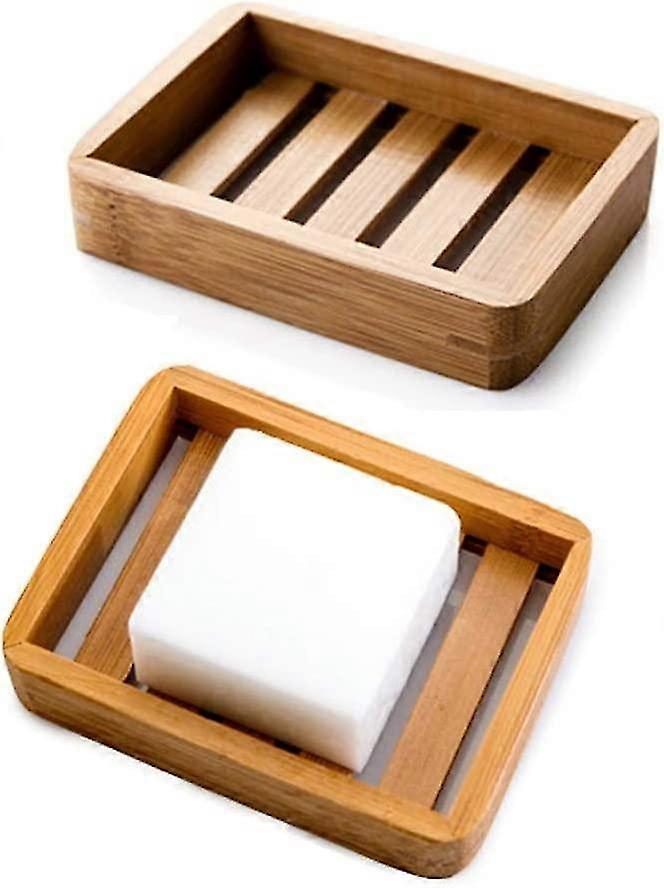 Set of 2 Natural Bamboo Wooden Soap Dish Soap Box Shower Saver Soap Storage Holder for Bathroom Show