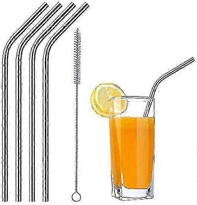 Wide Curved Metal Straws for Thick Drinks | 4-Pack Stainless Steel (9.5mm)