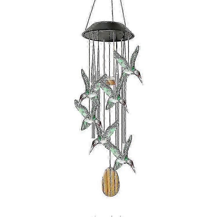 Solar Hummingbird Wind Chimes, Aluminum Tubes Wind Bell Color Changing Solar Led Lights Outdoor Windchimes For Garden Yard Patio Home Decor, Green(mul