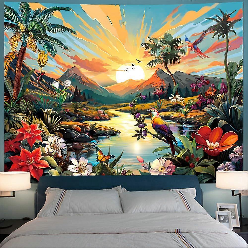 Sun Vintage Floral Plants Hippie Aesthetic Flower Tropical Palm Tree Nature Mountain Room Wall Hanging 59.1 × 78.7 inches