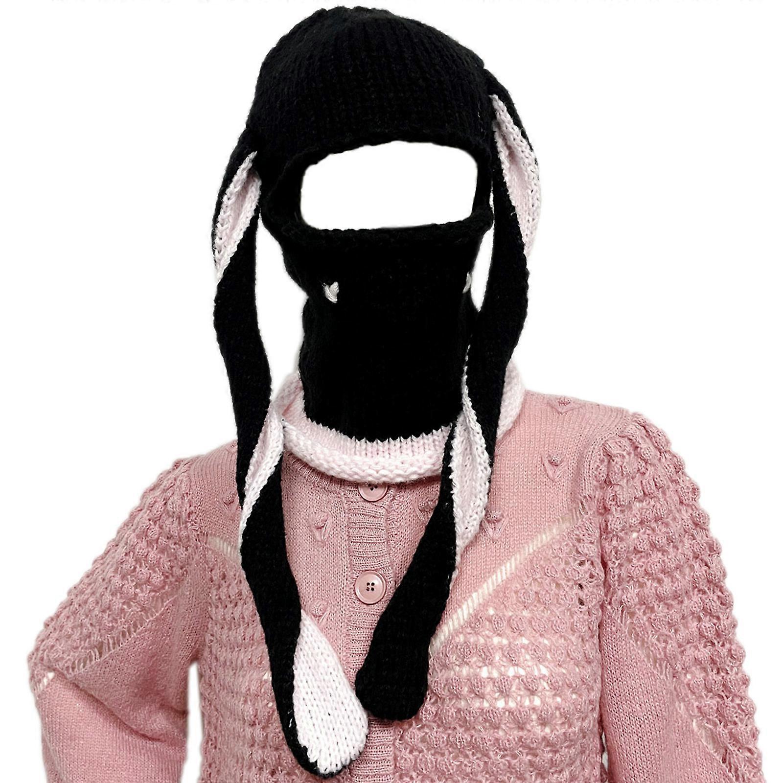Girls Rabbit Hat Y2K Knitted Ears Hat Cute Rabbit Gifts Warm Winter Hat Adult Children Knitted Ears Winter Photo Props Black