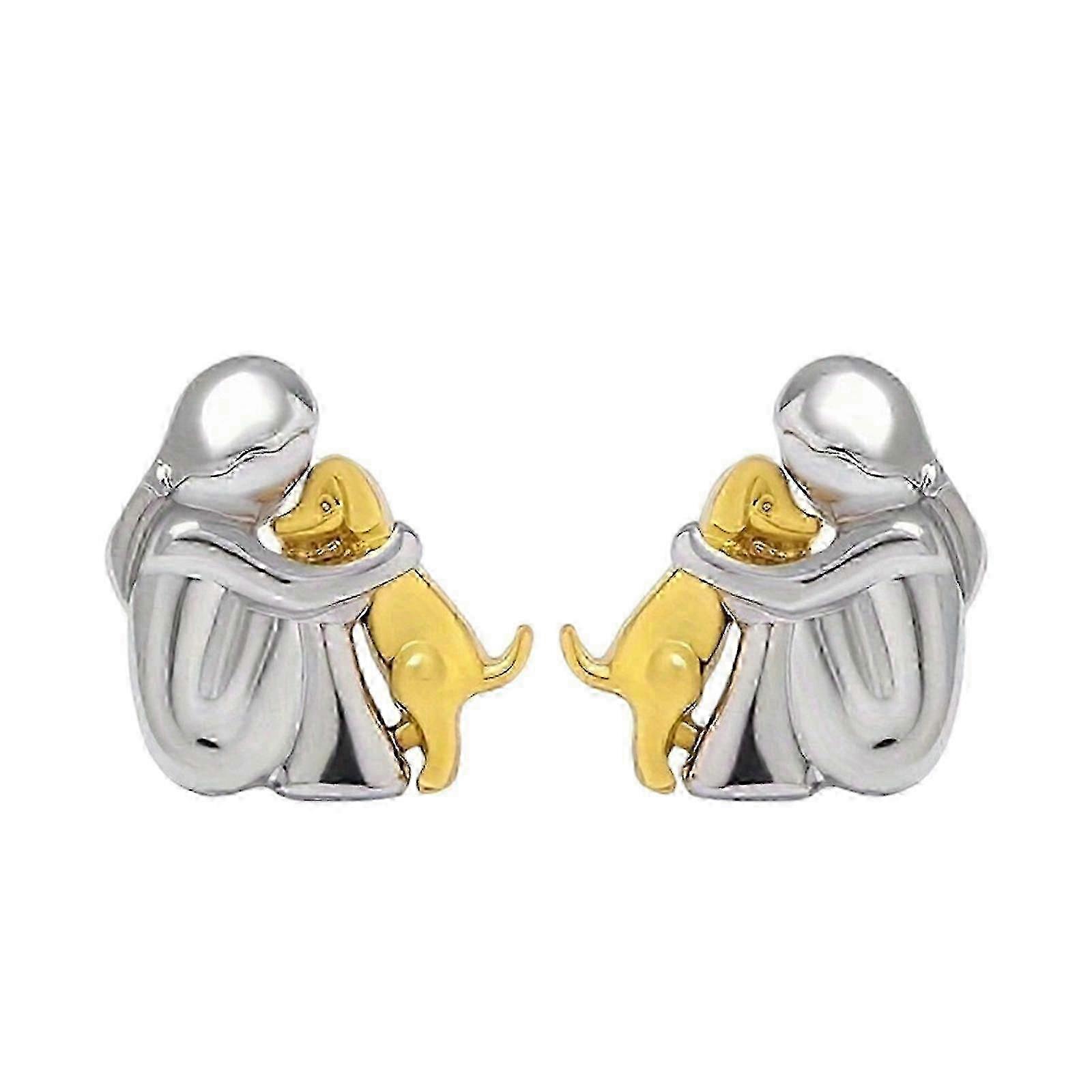 Girl Hugging Dog Pendant Necklace/Earrings Handmade Friendship Symbol Jewelry Stylish Animal Accessory for Pet Lovers