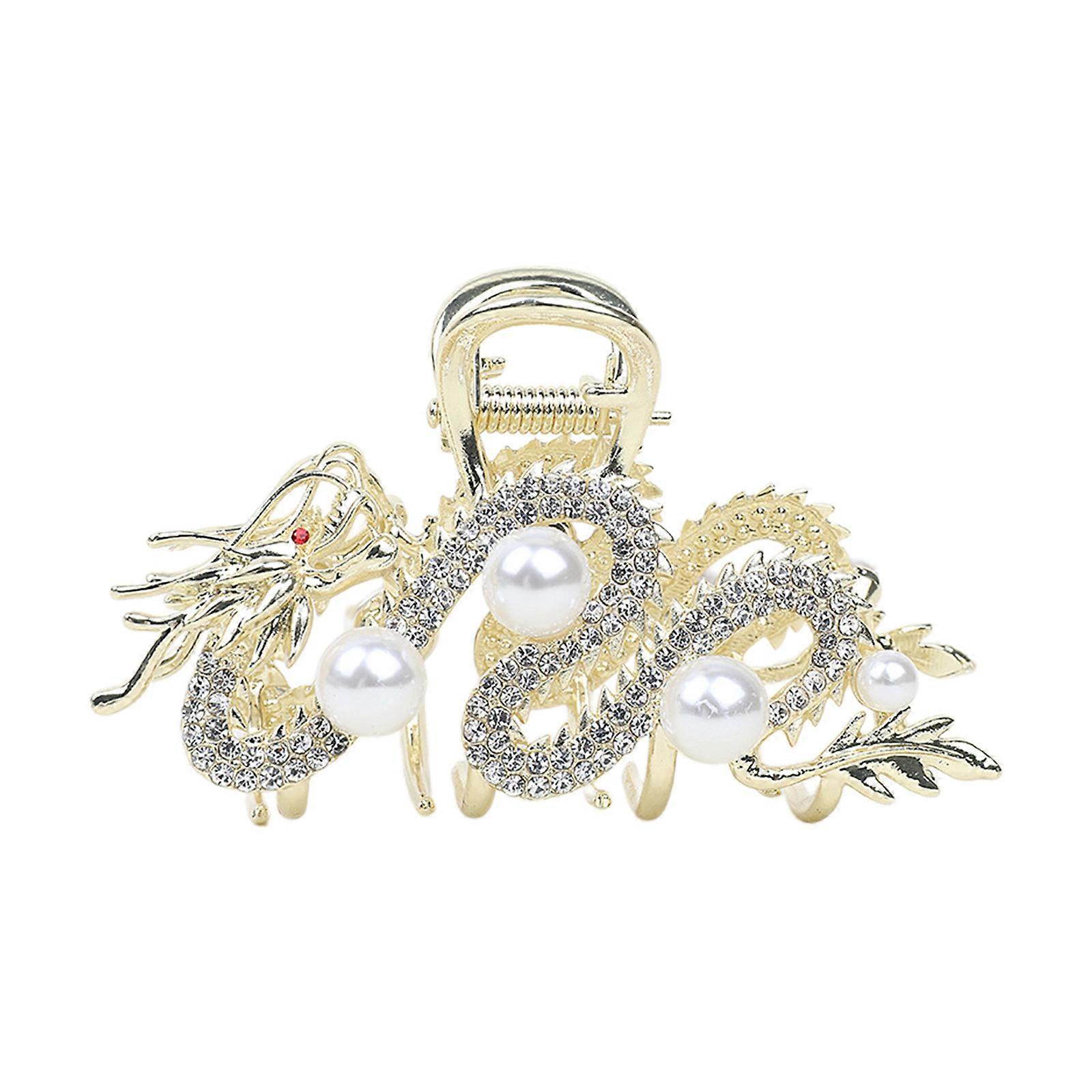 Girls Festive Chinese Zodiac Dragon Claw Clip New Year Diamante Hairpin Cool Claw Clip Blingbling Full Rhinestones Gold