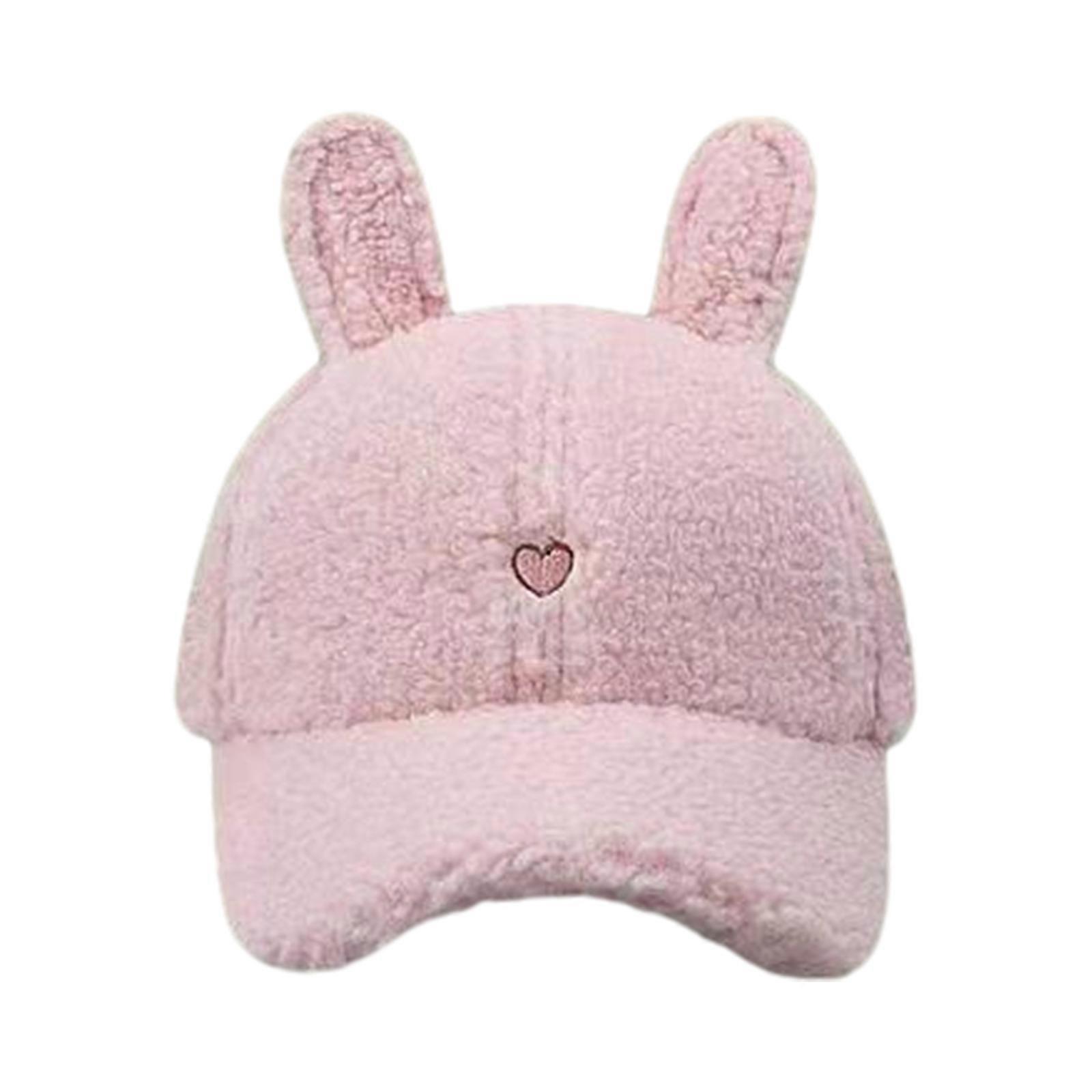 Cute Rabbit Ear Baseball Hat for Girls Long Brim Warm Plush Baseball Hat Teens Peaked Caps Adjustable Winter Casual Hat Pink