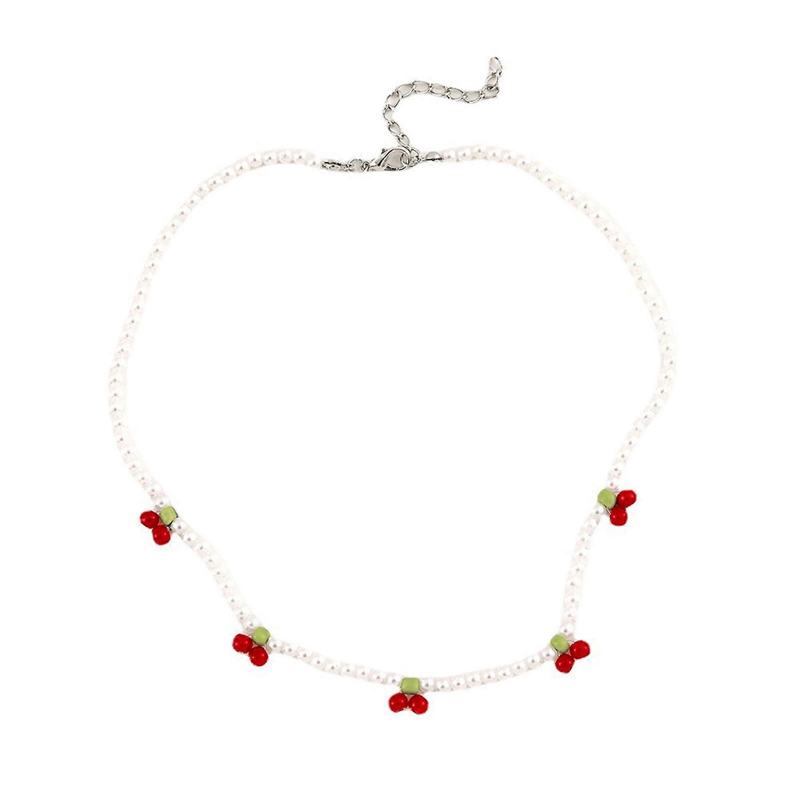 Cute Pearl Cherry Beaded Necklace for Girls Women Jewelry Gifts Charming