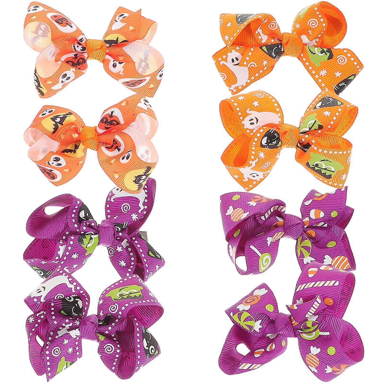Halloween Hair Decorations for Girls Bowknot Hair Clips Easy to Fix on Hair Assorted Color 8x5cm 8Pcs