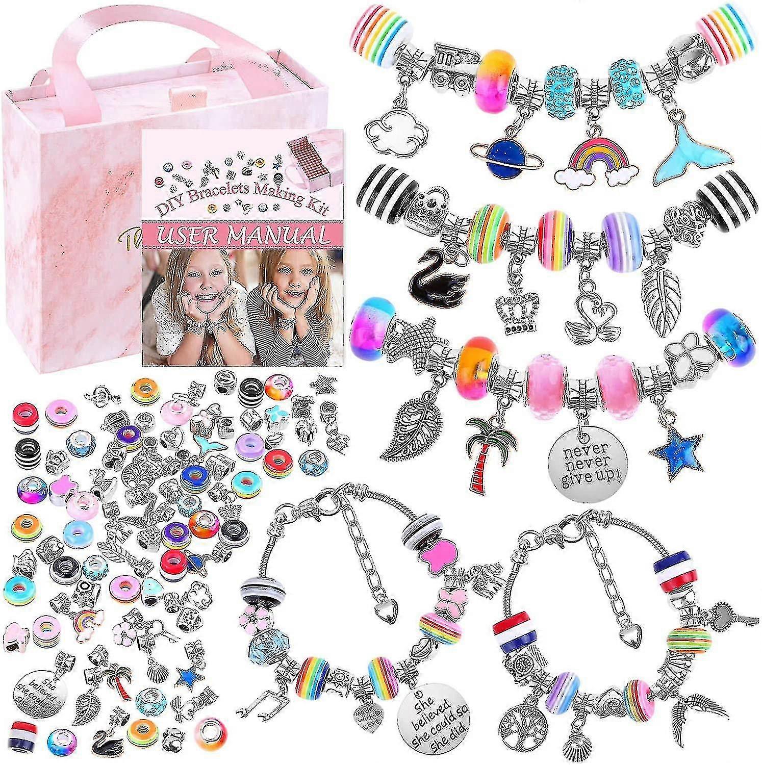 GREAT VALUE CHARM BRACELET MAKING KIT Flasoo DIY charm bracelet making kit come with 5 snake chain bracelets, 30 metal spacer beads, 20 spacer beads with dangle, 20 rainbow beads, 10 glass beads. This jewelry making kit is great for girls DIY bracelet making