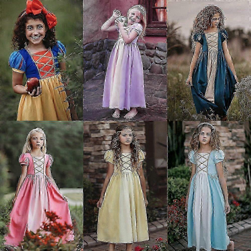Princess Knit Dress For Girls Belle Snow White Cotton Blend Short Sleeve Dress