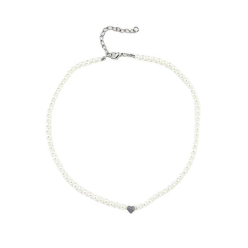 Fashion Clavicle Chain Heart Pendant Choker Exquisite Pearl Necklace for Girls