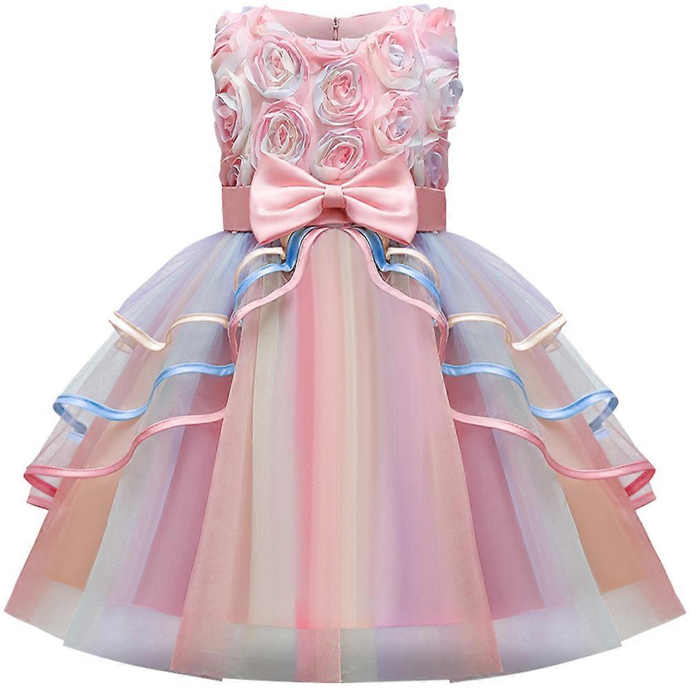 Flower Dress For Girls Fancy Dress Children Wedding Stage Performance Pink 70X59CM 1Set