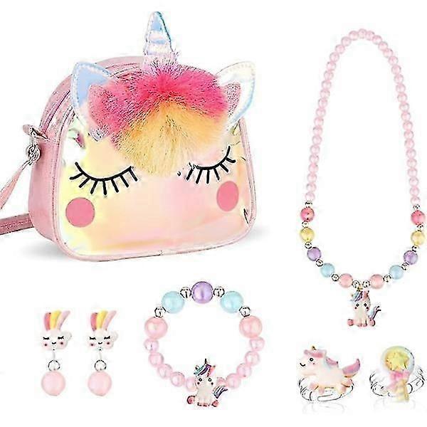 Unicorn Handbag Jewelry Set for Girls, Unicorn Necklace, Bracelet, Ring, Earring, Jewelry Set for Kids, Princess Dress