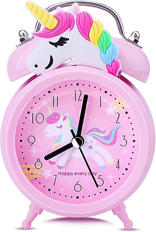 Unicorn Alarm Clock for Girls, Non Ticking Alarm Clock for Kids Girls, Silent Pink Bedside Alarm Clock, Classic Double Bell Clock with Backlight, Perf