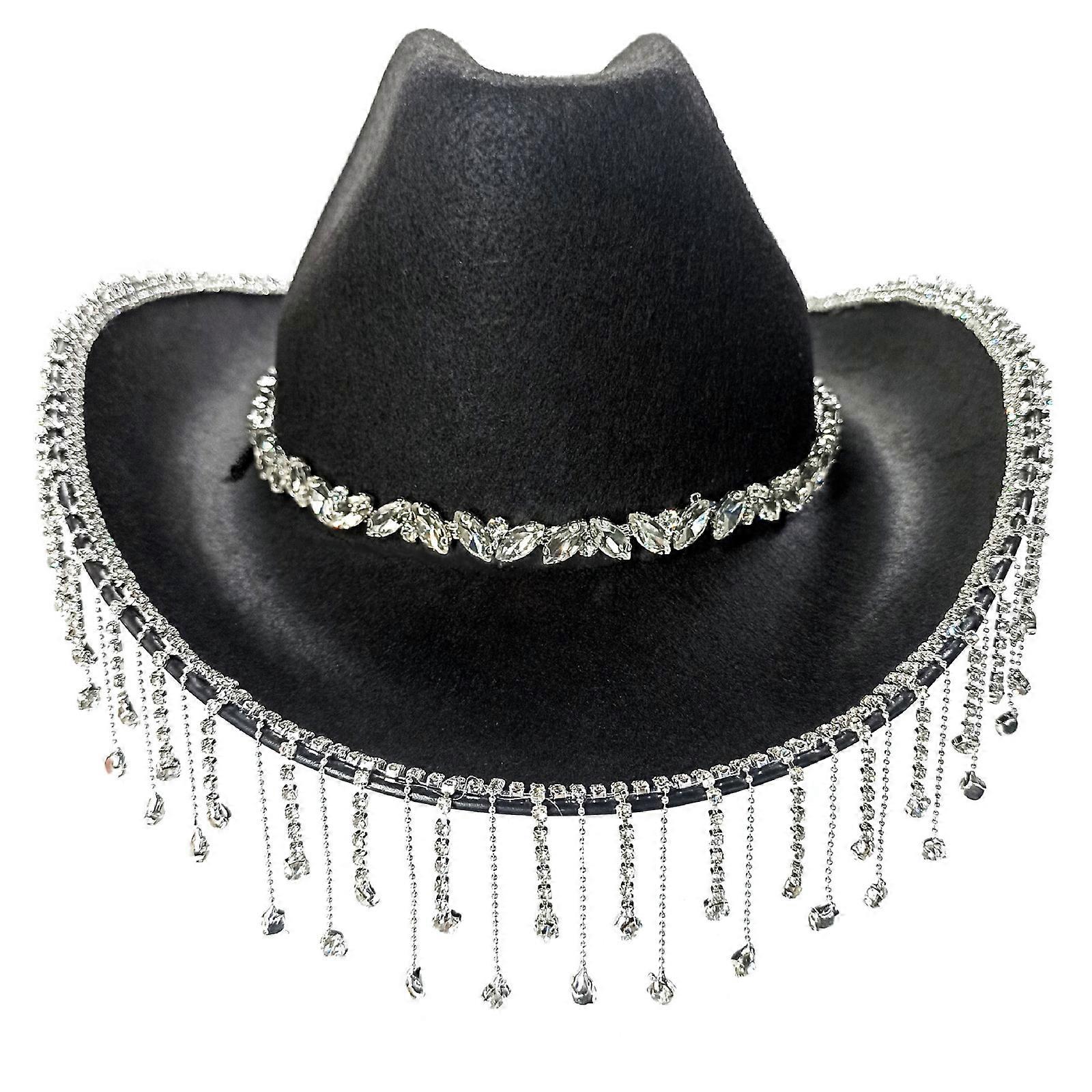 Rhinestone Cowboy Hat for Girls Rhinestones Fringe Glitter Rave Cowgirl Hat Cute Birthday Party Hat Costume Accessories Black
