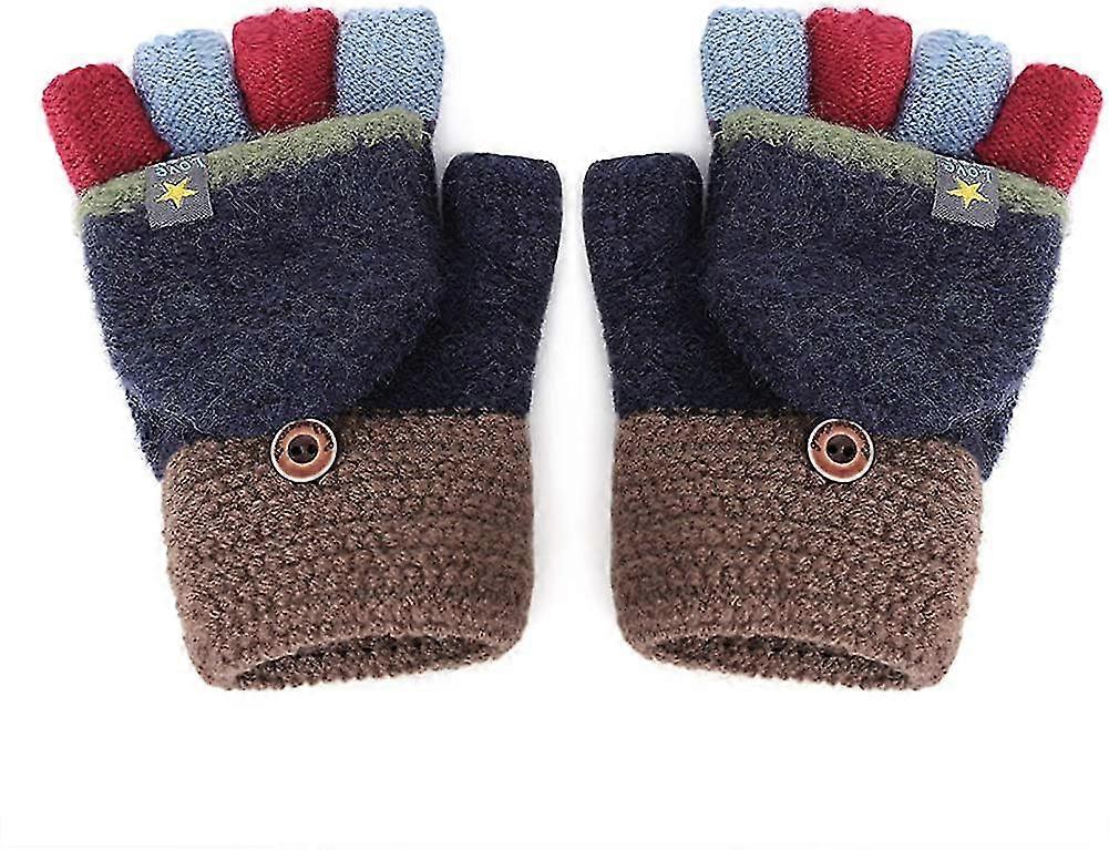 Children's Gloves For Girls Boys 5-10 Years Old Fashion Winter Autumn Woolen Mittens Half Finger Knitted Twisted Clamshell Double Thick Warm Gloves Fo