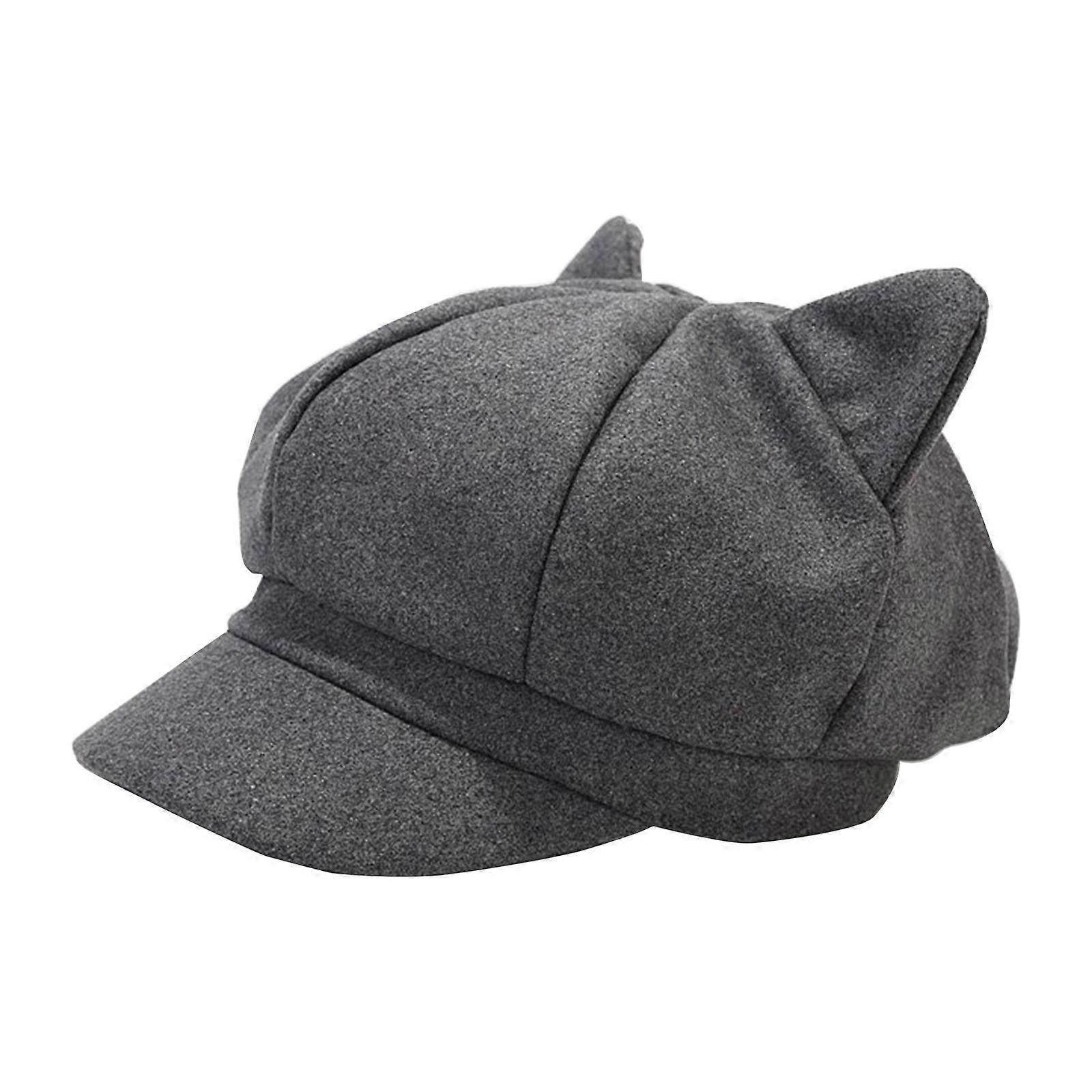 Japanese Anime Ear Beret Hat for Girls Fashion Octagonal Hat Cat Ear Peaked Cap Teens Girl Y2K Cabbie Cap Accessories Dark Grey