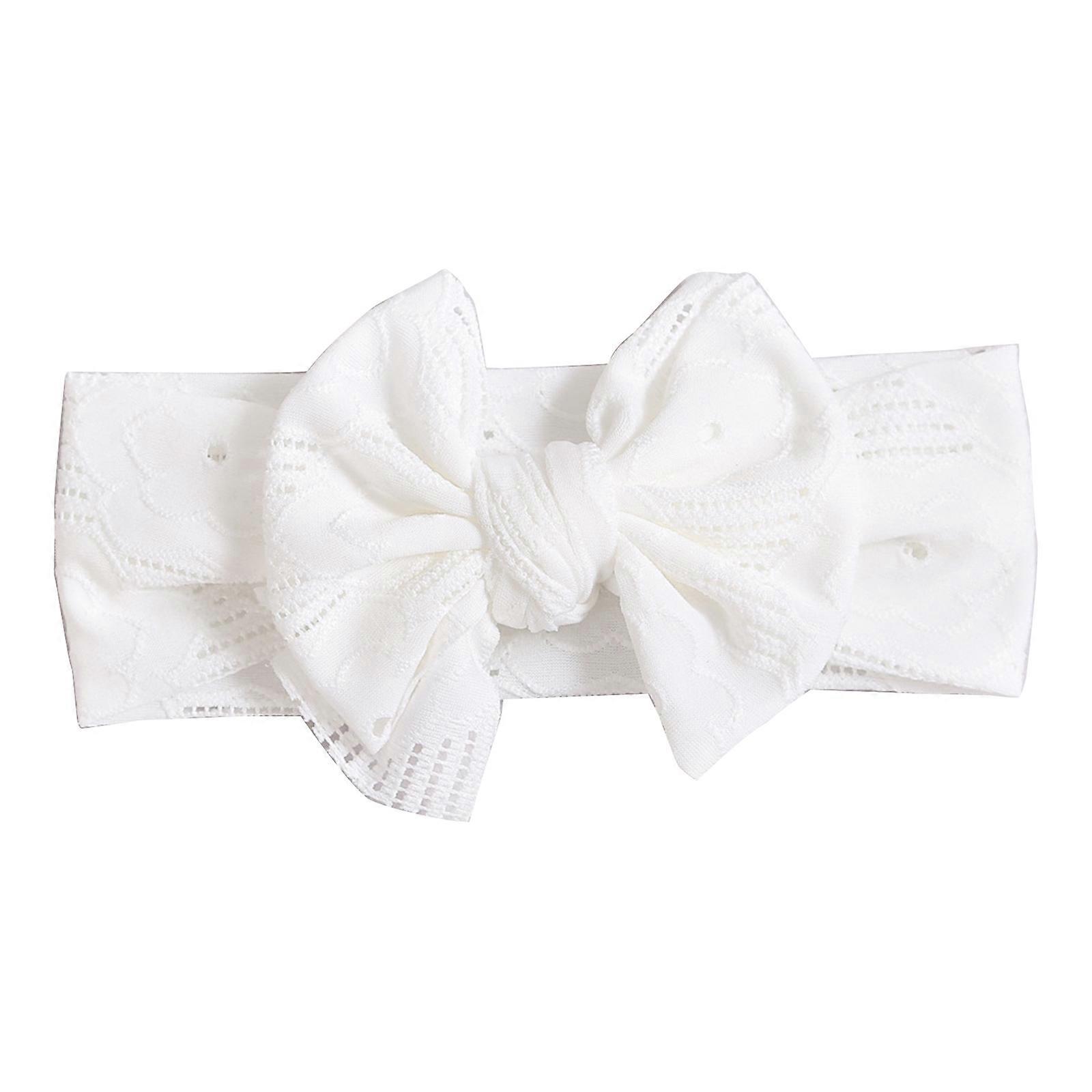Baby Bow Headband for Girls Breathable Fabric Bowknot Hair Band Toddler Turban Lace Wide Headband High Elastic Headdress White