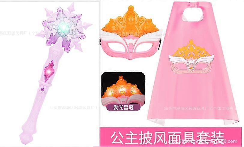 3pcs Princess Dress Up for Girls Light Up Snowflake Fairy Wand Sparkling Mask and Cape for Halloween Party Birthday Celebrations and Role Play