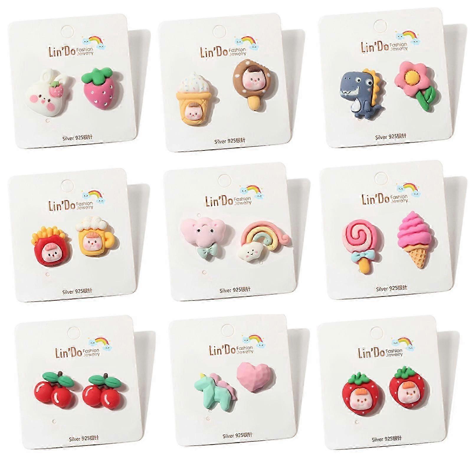 9 Pairs Cute Stud Earrings for Girls Hypoallergenic Earrings Polymer Clay Stud Earrings Set Colorful Earrings for Girls and Women