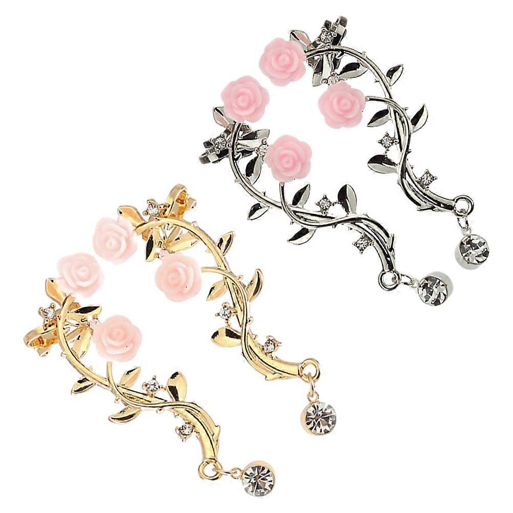 Girls Earrings Rose Shaped Bone Clip Ear Jewelry Daily Wear Assorted Color Fashion Accessory 2 Pairs