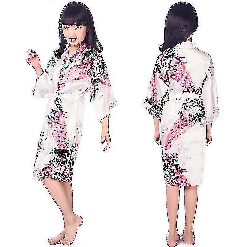 Girls' Satin Kimono Robe - Peacock And Blossoms Bathrobes Dressing Gown For Spa Wedding Birthday-YuJia
