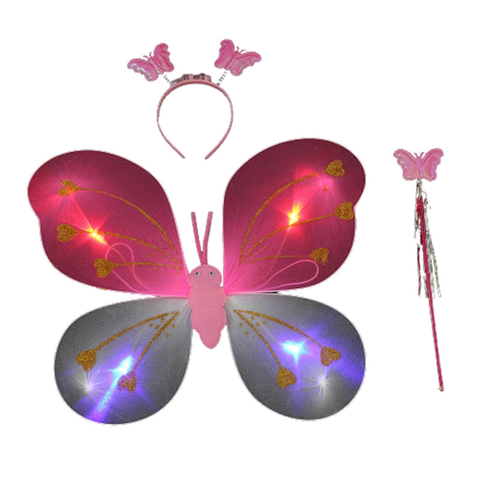 Girl Princess Fairy Costumes Includes Fairy Wing Fairy Wand Headband for Birthday Party Costume Girl Fairy Costumes Set Pink with lights