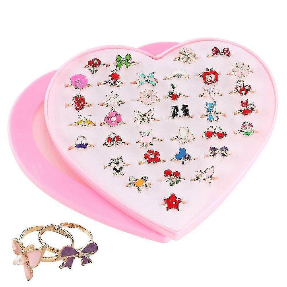 36pcs Adjustable Rings Set For Girls Princess Jewelry Finger Rings For Kids Birthday Party With Heart Shape Box