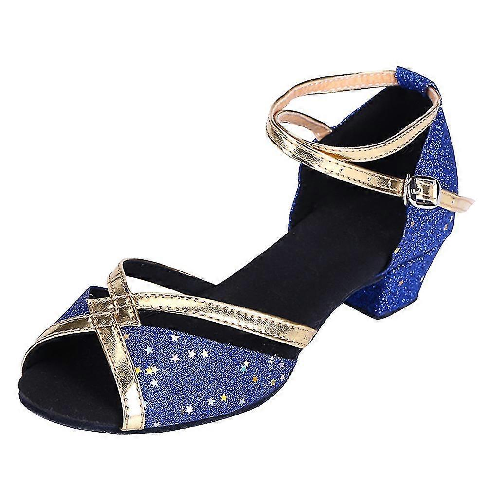 Girls Princess Shoes Sequined Latin Dance Peep-toe Sandals Pumps With 3cm Heel Pearl Crystal Bling Kids School/team