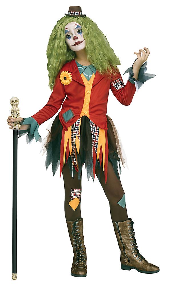 Get Ready To Turn All The Smiles Upside-Down When You Show Up In This Creepy Clown Outfit. This Multi-Colored Clown Outfit Is Perfect For Causing Mischievous Fun At Your Carnival Show. The Rowdy Clown Child Costume Includes A Dress With Attached Red And Yellow Jacket That Has Jagged Tulle Sleeve Cuffs, Flower Accent And Tattered Tulle Skirt. Also Comes With Footless Nylon Tights And Mini Clown Hat. Wig, Clown Makeup, Cane And Boots Are Not Included.