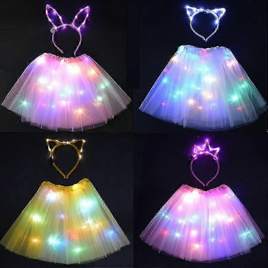 Girl Women Led Skirt Fairy Light Tutu Glow Cat Bunny Ear Crown Headband Party Gift Birthday Wedding Costume Halloween Christmas