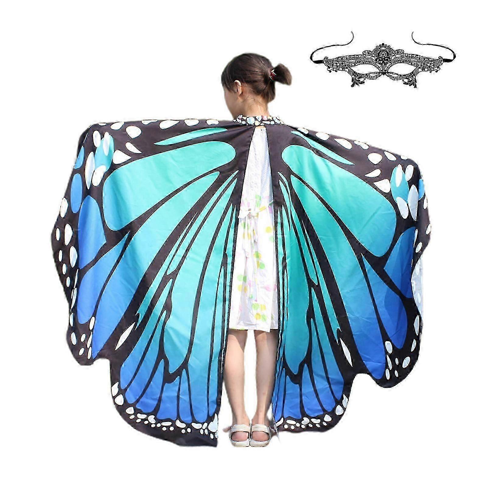 Girls Fairy Wings Halloween Costume with Mask and Shawl