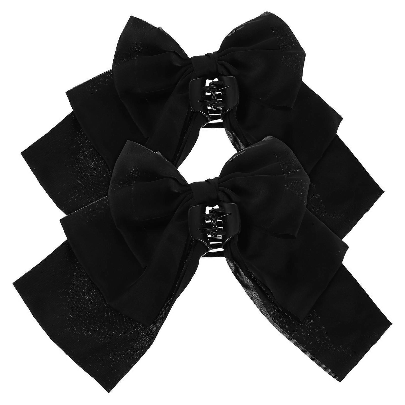Girls Bow Hairpin French Ponytail Barrette Casual Outings Black Satin 2Pcs