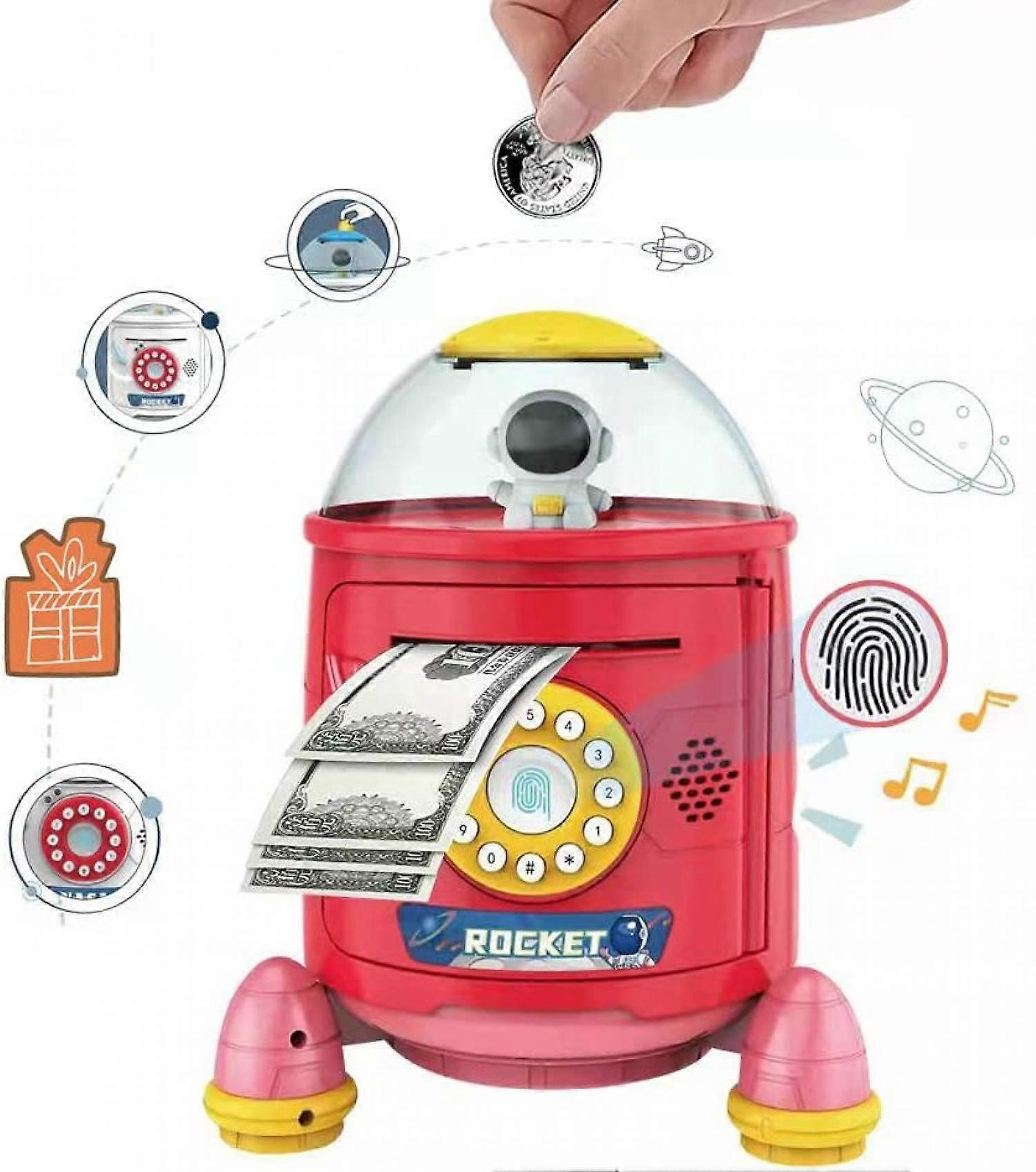 XYC Rocket Piggy Bank for Girls Boys kids ,Large ATM Electronic Money Coin Banks with Password Protection, Fingerprint and Automatic Paper Money Scrol