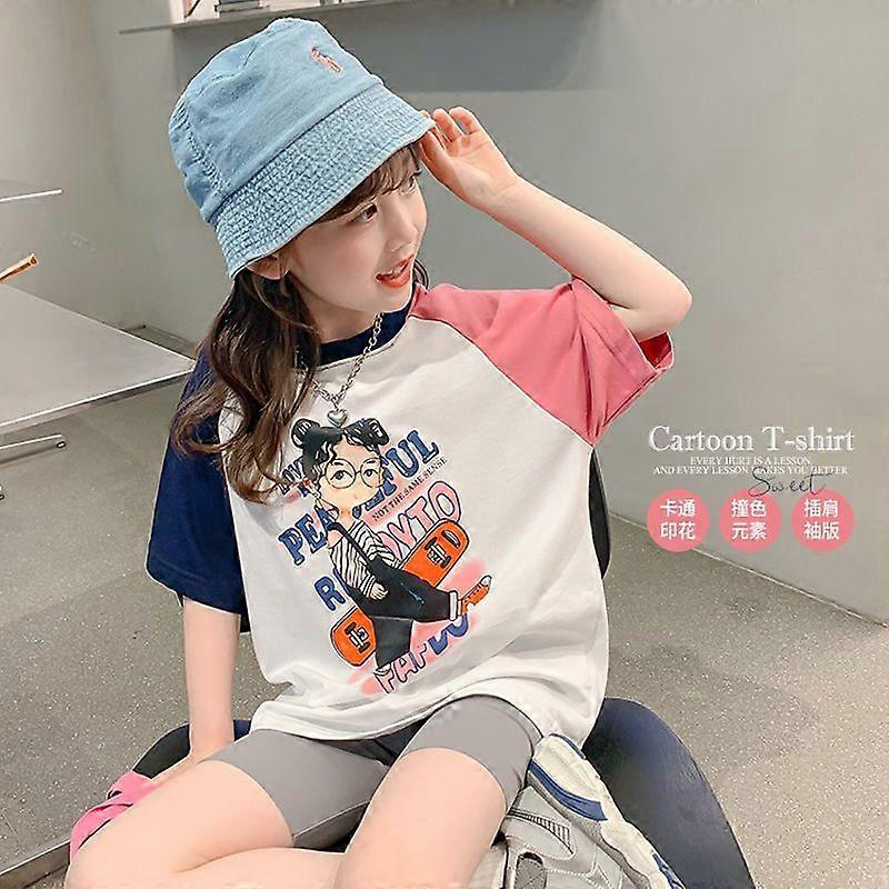 Girls' Cotton Short-Sleeved T-Shirt Summer Clothes For Children Fashionable Versatile Casual Loose Mid-Length Medium And Big Children