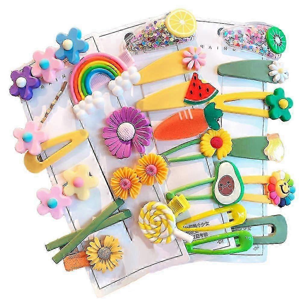 Colorful Rainbow Flower Hair Clips for Baby Girls - 24 Non-Slip Accessories for