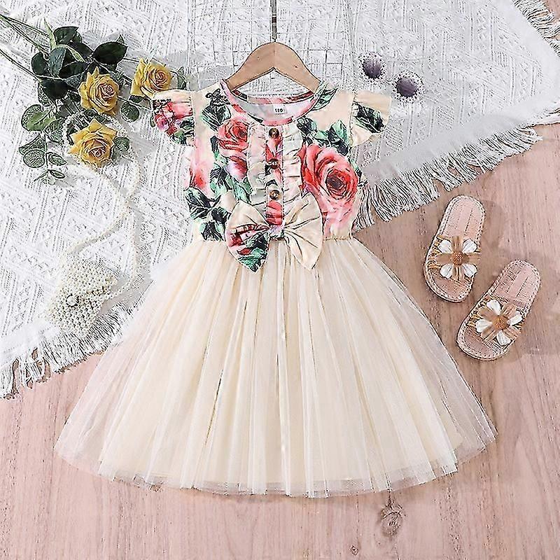 Baby Girl Sweet Princess Mesh Dress Summer Short Sleeve Kids Bowknot Dresses