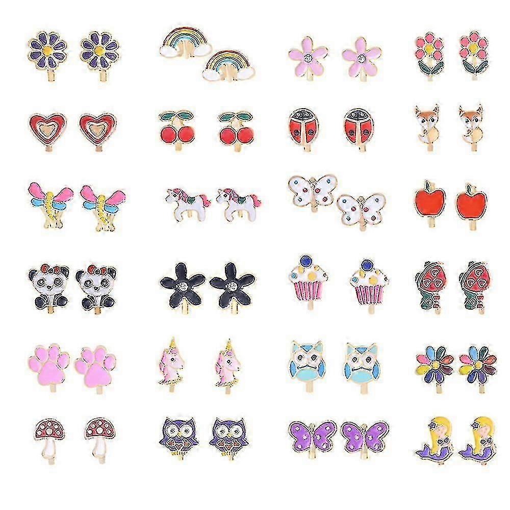 24 Pairs Of Girls Clip On Earrings Kids Cute Flower Metal Earring Princess Dress Up