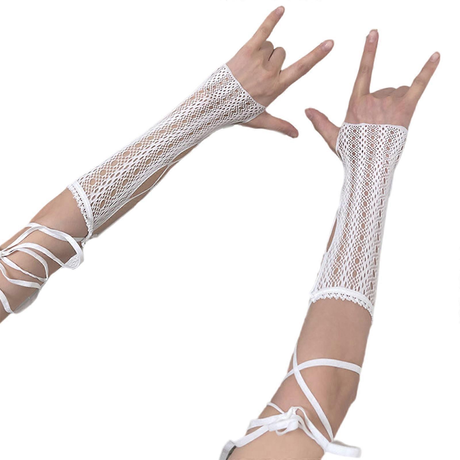 Girls Balletcore Gloves Laciness Net Gloves for Subculture Teens Elaborate Tie Fingerless Gloves White