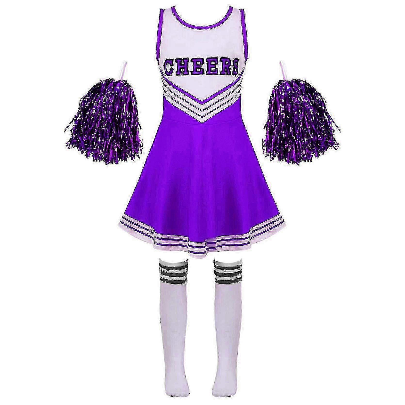 Girls Cheerleading Uniform Dance Costume Kids Cheerleader Outfit Round Neckline Patchwork Style Dance Dress Flower and Socks