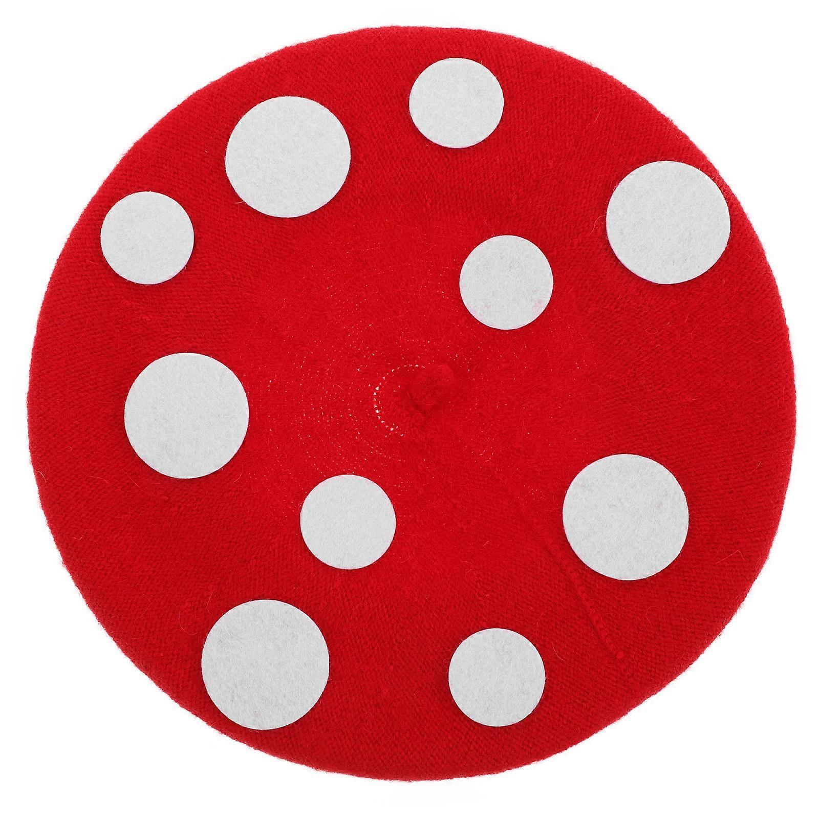 Red Mushroom Beret Hat for Girls Wool Blend Adjustable Fit Fashionable Trendy Party Accessory 9.5 Inches