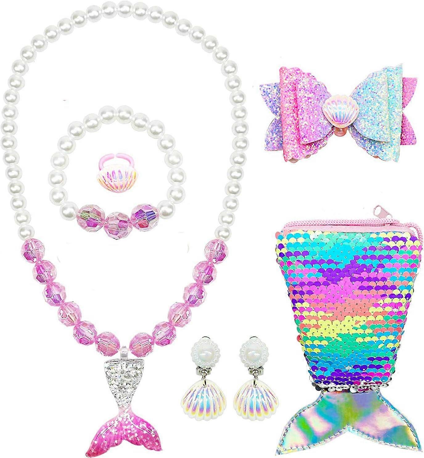 Girls 7 Piece Jewelry Set - Necklace, Rings, Bracelets, and Hair Clip - Perfect for Dress-Up and Daily Wear