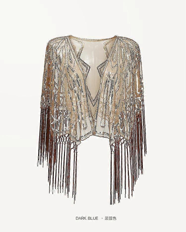 Women's 1920s Shawl Beaded Sequin Deco Evening Cape Bolero Flapper Cover Up
