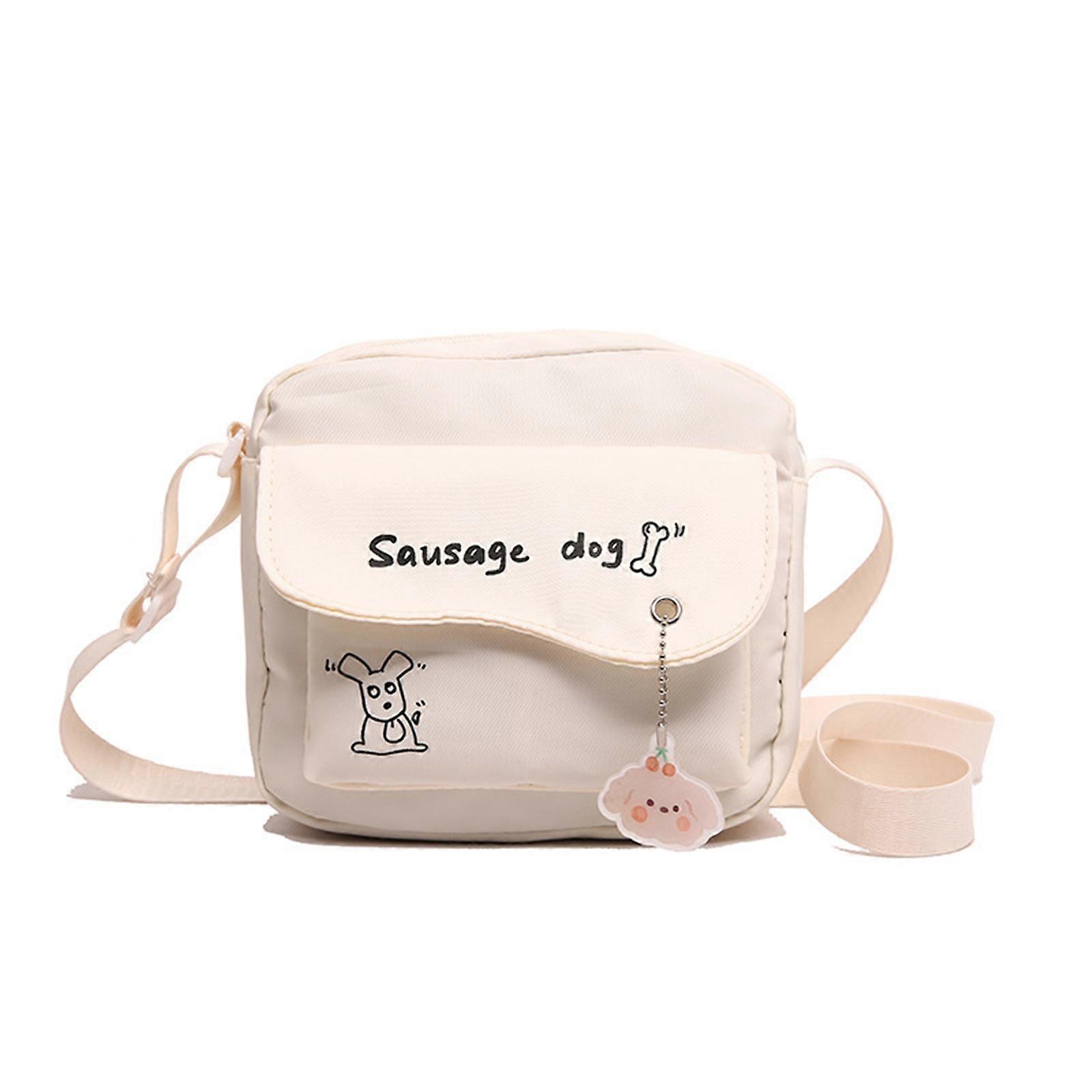Aesthetic Cute Small Crossbody Bag with Keychain Pendant for Women and Teen Girl Student Adjustable Strap Shoulder Purse White