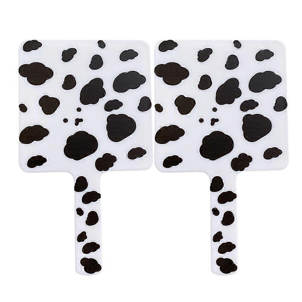 2pcs Handheld Cosmetic Mirrors with HD Reflection for Travel Portable Makeup Mirrors with Cow Pattern for Women and Makeup Artists