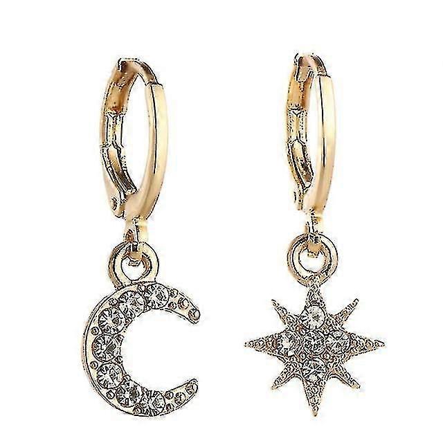 Lovely Small Silver Color Hoop Earrings Compatible With Women Star Moon Crystal Earrings Jewelry Fashion Metal Cone Earrings Accessories