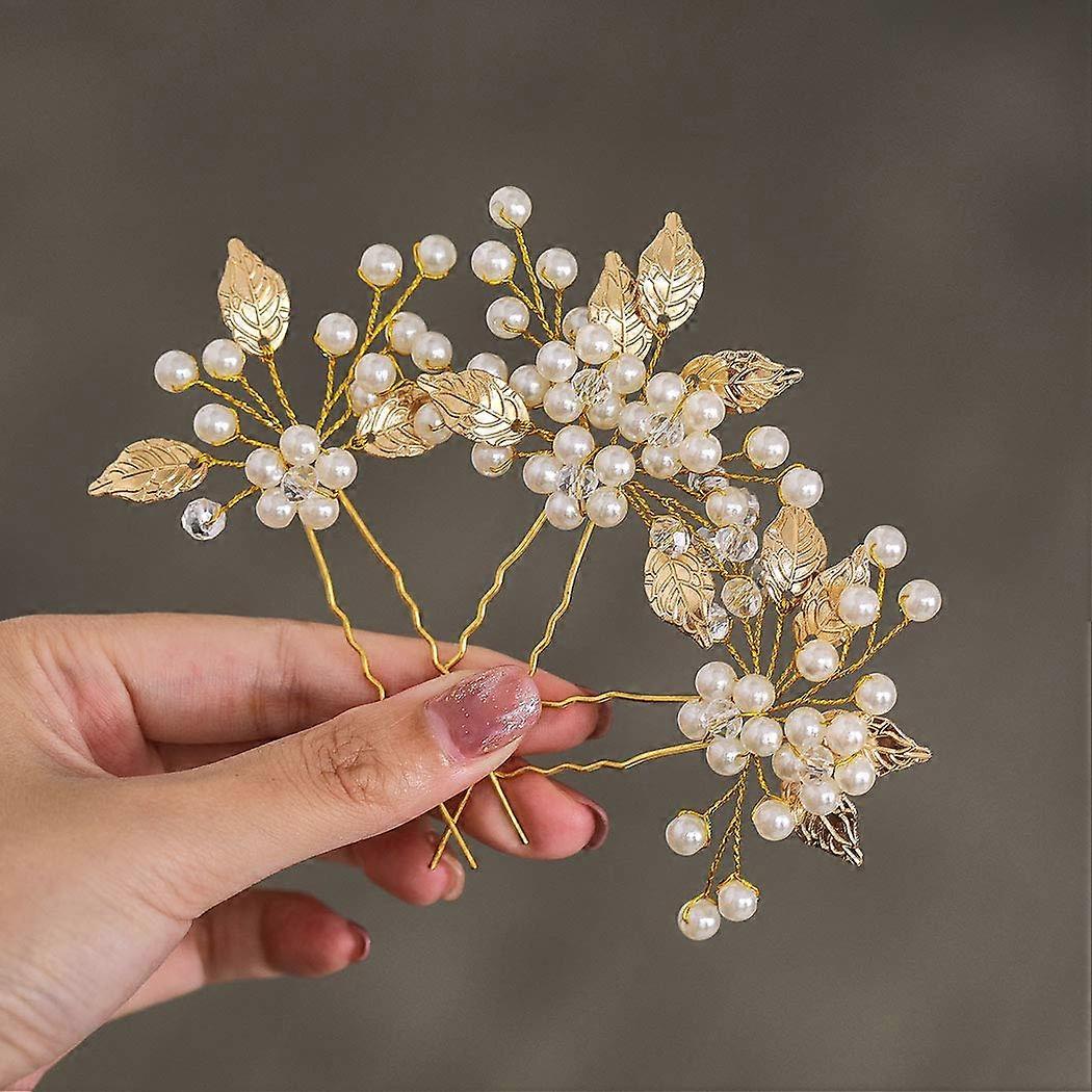 Gold Crystal Hair Piece for Women & Girls, Bridal Hair Accessories Elegant Pearl Leave Flower Design (Perfect for Prom Honeymoon)