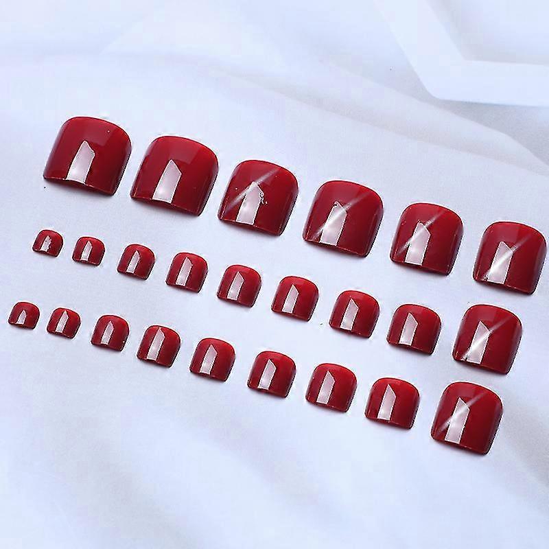 Solid red fashion square short all-inclusive toenails for women and girls - 72 pieces