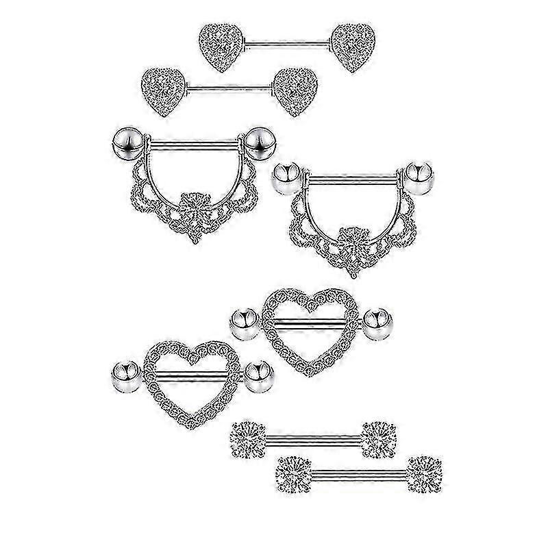 Stainless Steel Nipple Piercing Jewelry Set Including Nipple Bars Barbell Tongue Ring and Shield Rings for Women and Girls