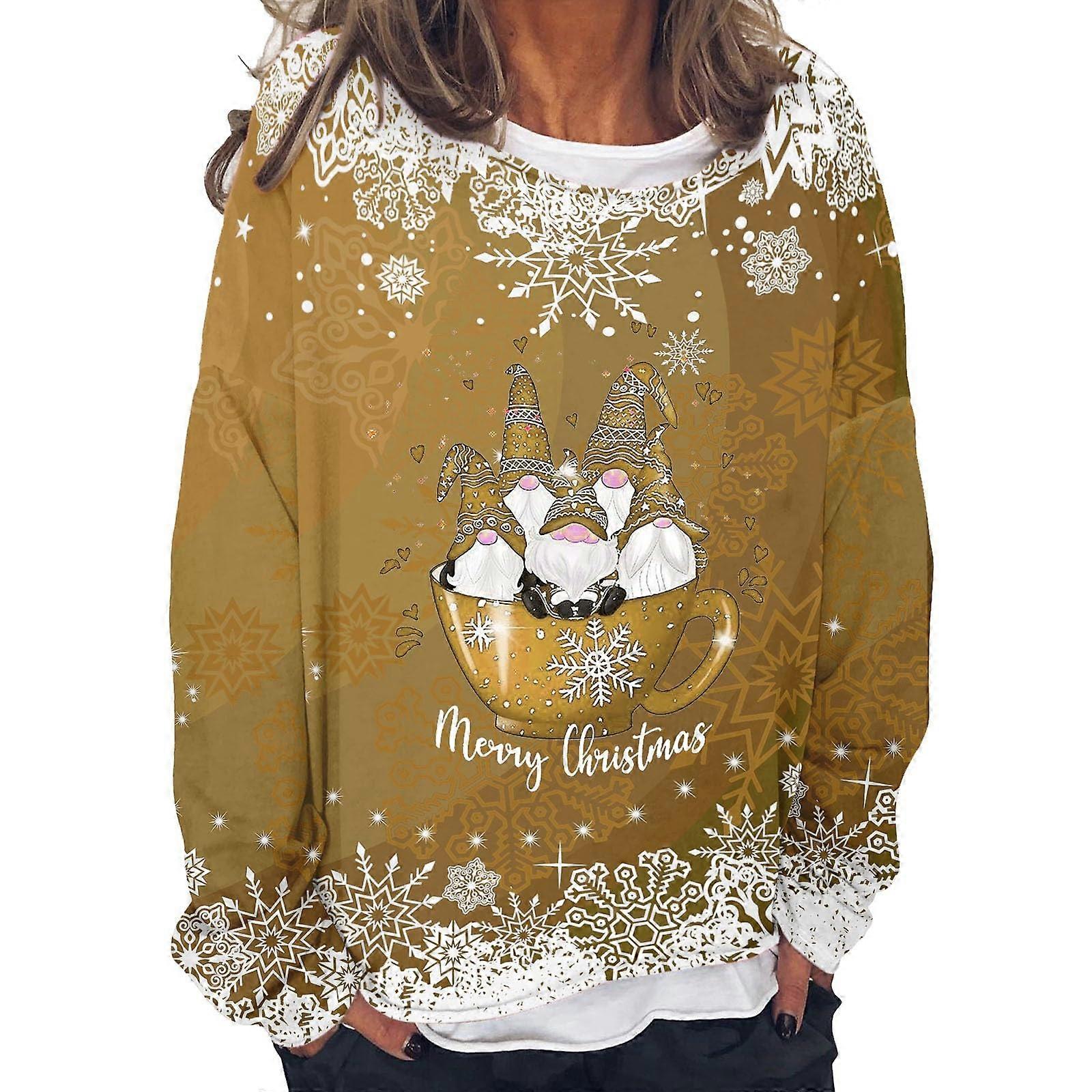 Fashionable sweatshirts for women and girls, printed tops, hooded sweaters, autumn, longsleeved yellow 3XL